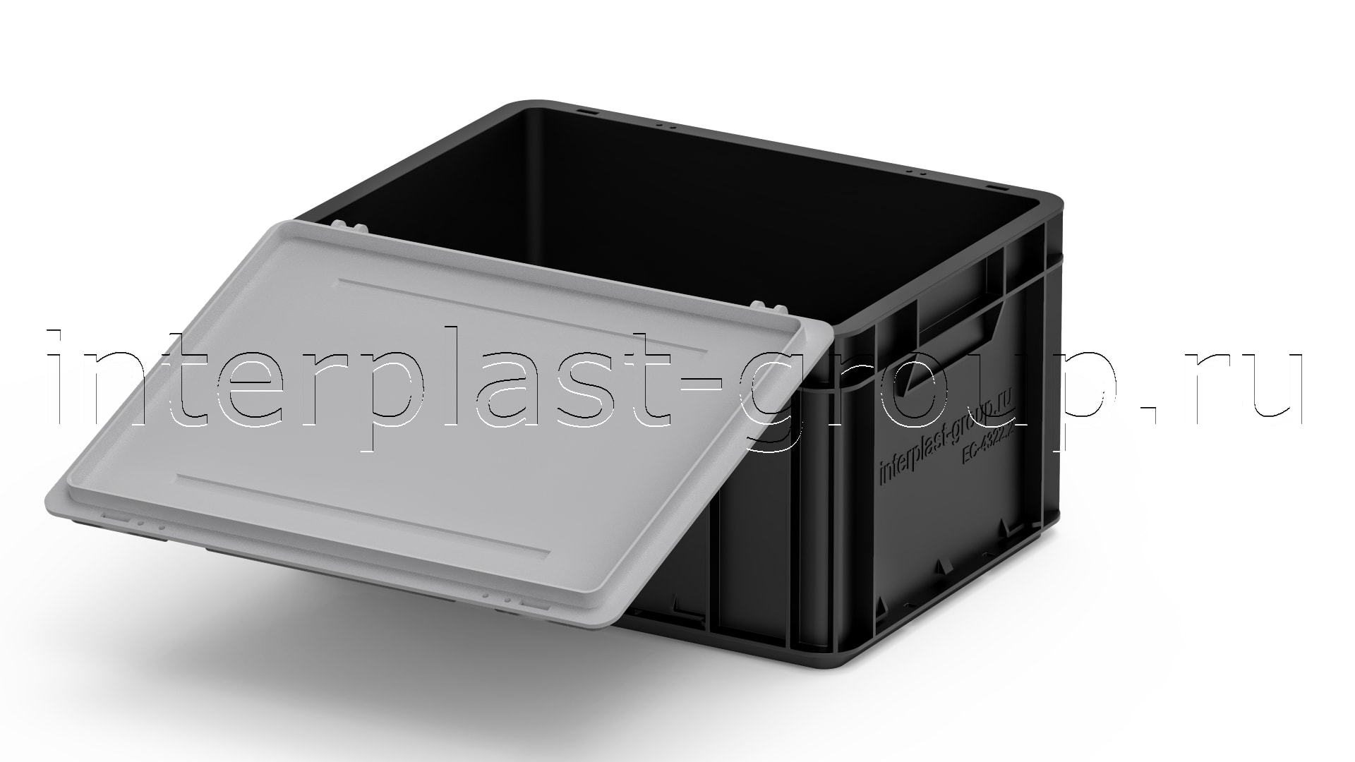 Евроконтейнер закрытые ручки/сплошное дно (черный), 400x300x220 мм