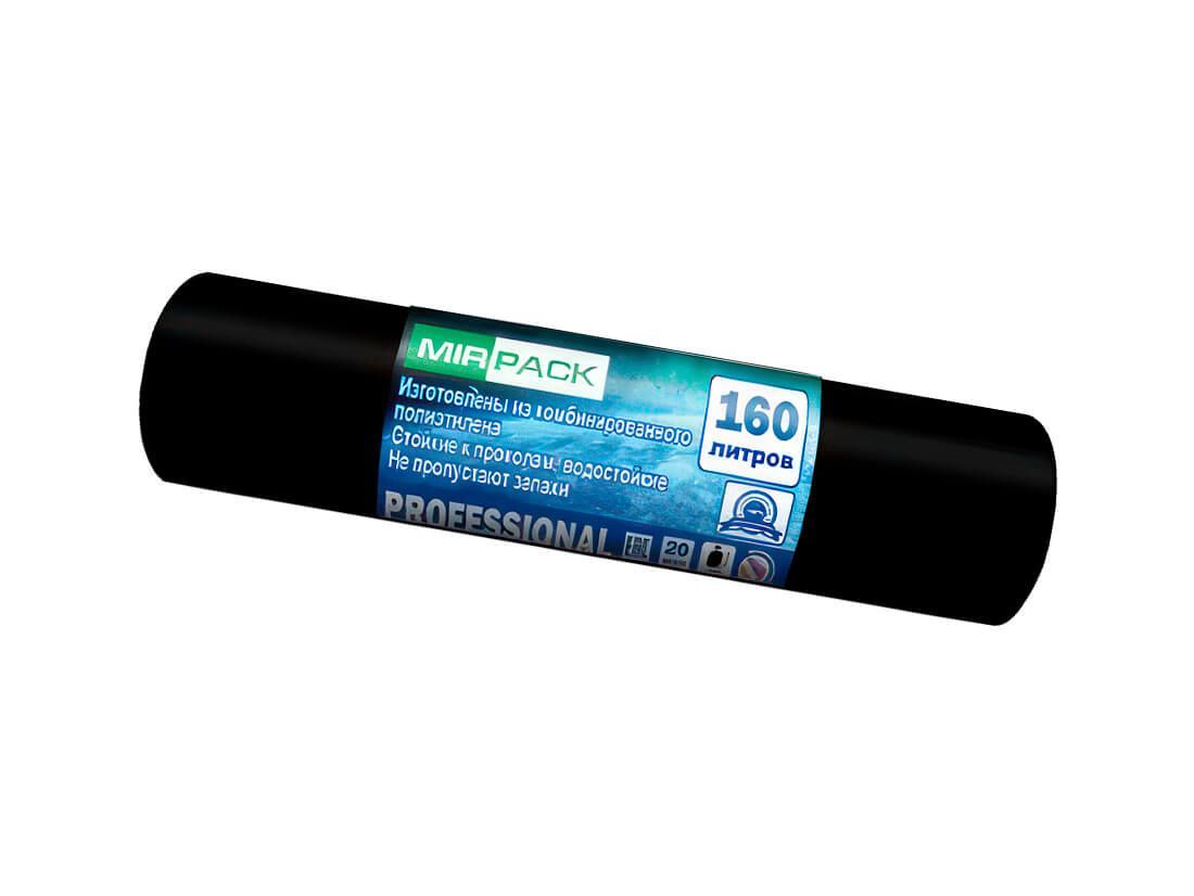 Мешки для мусора 160 л, ароматизированные, черные, в рулоне 20 шт., ПВД, 30 мкм, 1100х930 мм, PROFESSIONAL, 16020440