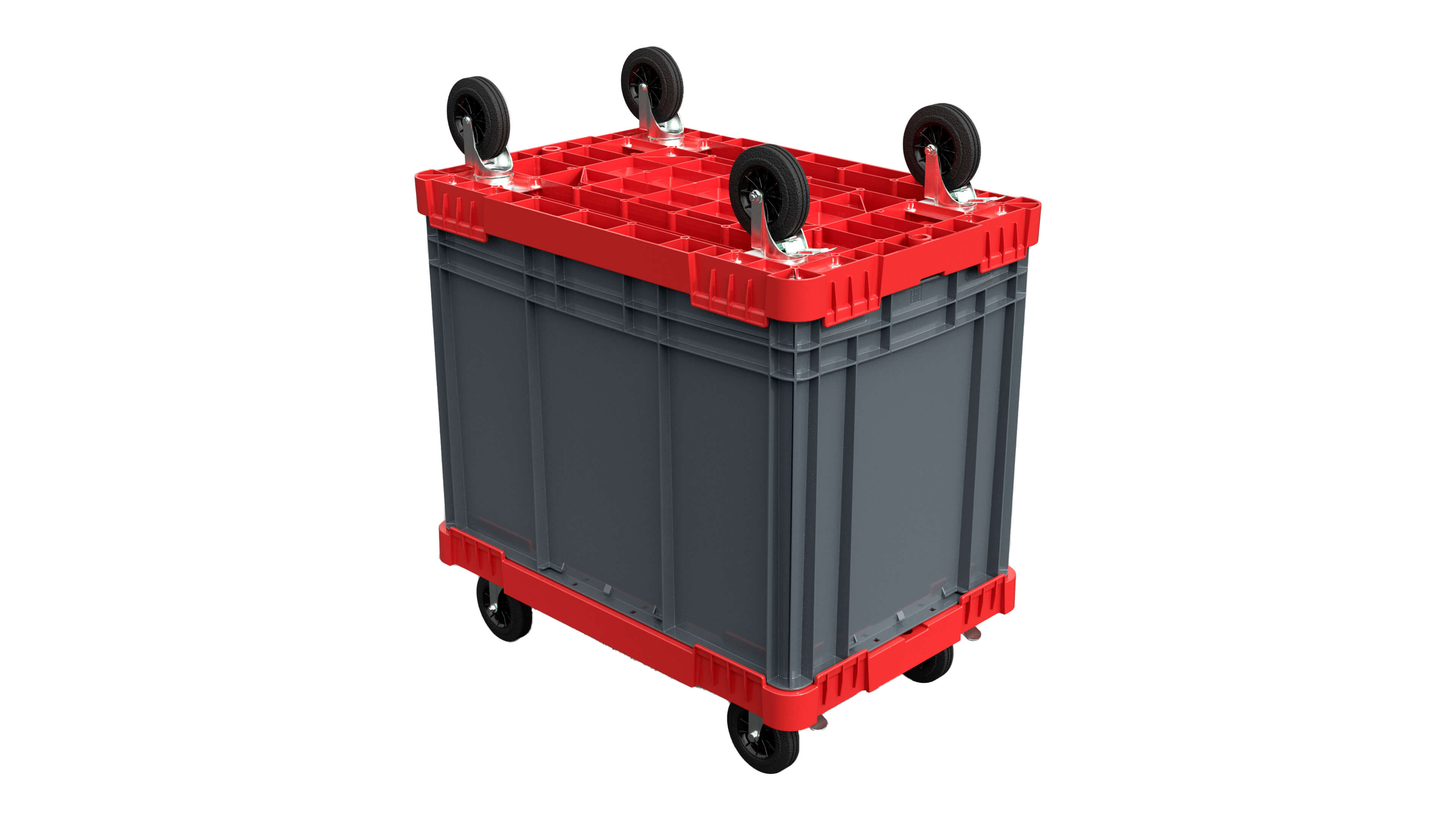 Бортики-ограничители по всем сторонам тележки обеспечивают безопасную фиксацию груза, и, если потребуется, вы сможете установить эту тележку как крышку на контейнер, чтобы оптимизировать использование пространства.