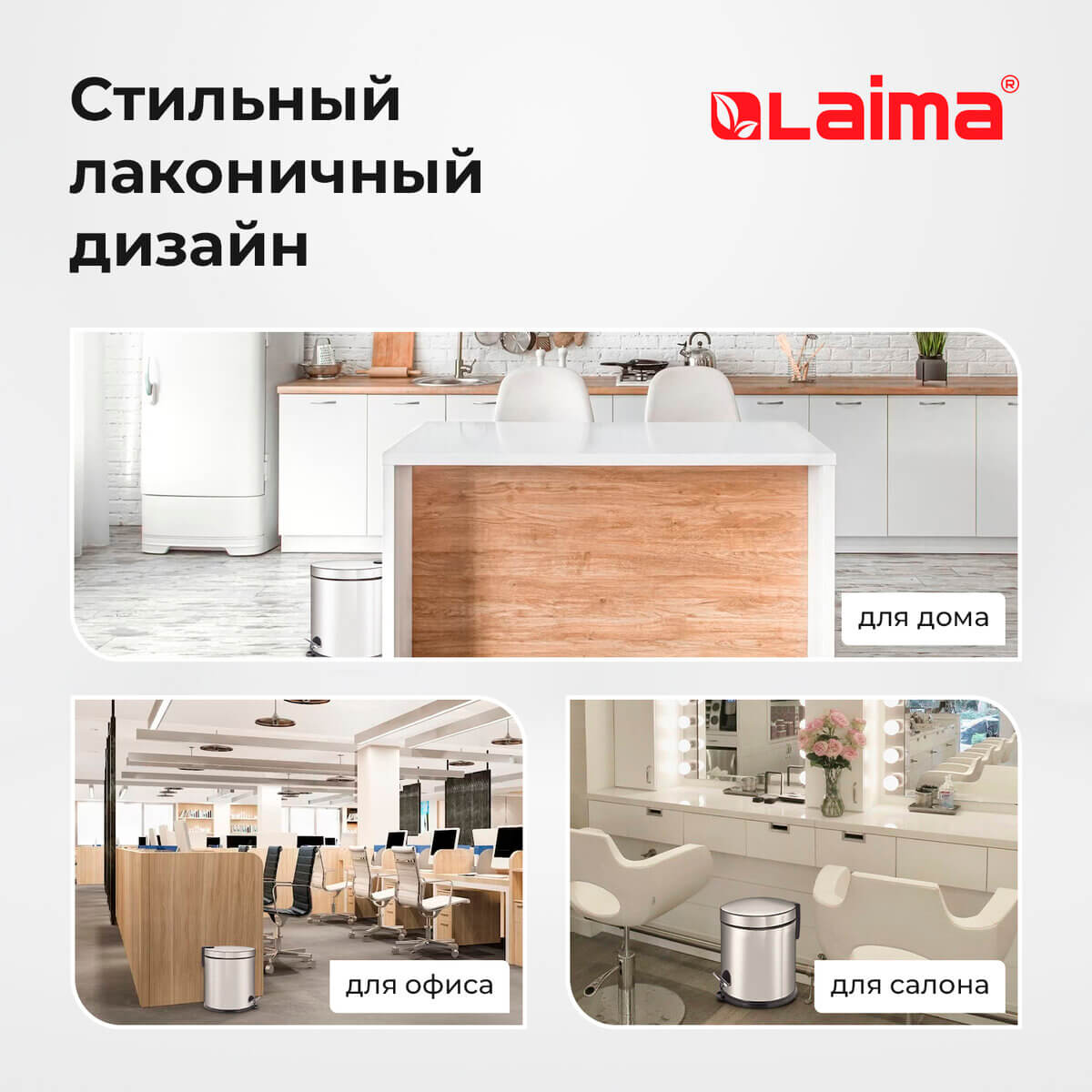 Ведро-контейнер для мусора урна с педалью LAIMA Classic Plus, 20 л, зеркальное